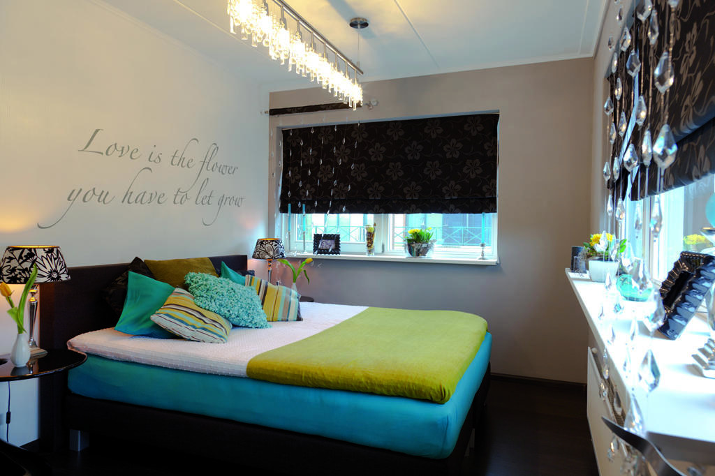 Punktem wyjścia do tysiąca niezwykłych pomysłów Pani Maryli były białe ściany i kilka mebli niezbędnych do życia jakie zastała po przyjedzie do Holandii. Głównym celem było ożywienie wnętrza i wprowadzenie do niego życia. Nieujarzmiona energia i chęć działania sprawiły, że już kilka dni po przeprowadzce, ściany otrzymały swój nowy charakter. Salon okazał się największym dylematem Pani Maryli. Zakochana w motywach kwiatowych, tapetach, fiolecie i turkusie, zatracona w stylu vintage a z drugiej strony lubiąca ład i porządek, podjęła wyzwanie. Wiedziała, że pogodzenie wszystkich upodobań nie będzie możliwe, a dni upływały na poszukiwaniu idealnej koncepcji, która spójnie połączyłaby wszystkie miłości Pani Maryli. Przełomem w tworzeniu koncepcji salonu była wyprawa, z ukochanym, do Amsterdamu. Po całym dniu intensywnych poszukiwań, w ogromnym stosie Pani Maryla wypatrzyła piękną poduchę w kwiatki i od razu wiedziała, że to jest to czego szuka: turkus w połączeniu z limonką oblane czekoladą. To był początek zmian w salonie. I choć pomysł dobierania tapet, mebli i koloru ścian do poduszki może wydawać się mało racjonalny albo wręcz trudny do realizacji, efekt okazał się zaskakujący i niezwykle przyjemny w dobieraniu kolejnych elementów wyposażenia. Wprowadzona kombinacja kolorystyczna okazała się wdzięcznym pretekstem do metamorfozy sypialni, w której zastąpiła ulubiony fiolet.