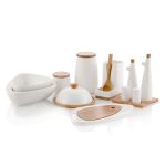 Miejskie inspiracje zaowocowały także nowym produktami kuchennymi. Tutaj czekają na nas m.in. bardzo proste zestawy akcesoriów Bastiando w bieli lub Baking w czerwieni (obok nich znajdziemy także bardziej klasyczny Italiana). Mnóstwo humoru wniosą do kuchennych wnętrz kolorowe pojemniki, młynki do przypraw oraz Kids, specjalna seria szpatułek w kształcie małych ludzików. Do robienia drinków oraz dressingów możemy wykorzystać przezroczyste naczynia ozdobione prasowymi nagłówkami (aby się nie ubrudzić, załóżmy nowy, jeansowy fartuszek). Z kolei o poranku obudzi nas pyszna kawa, podana w dwukolorowych kubkach lub filiżankach. Oczywiście nie zapominajmy o pysznym croissancie, podanym na talerzu z motywem krzyżówki.