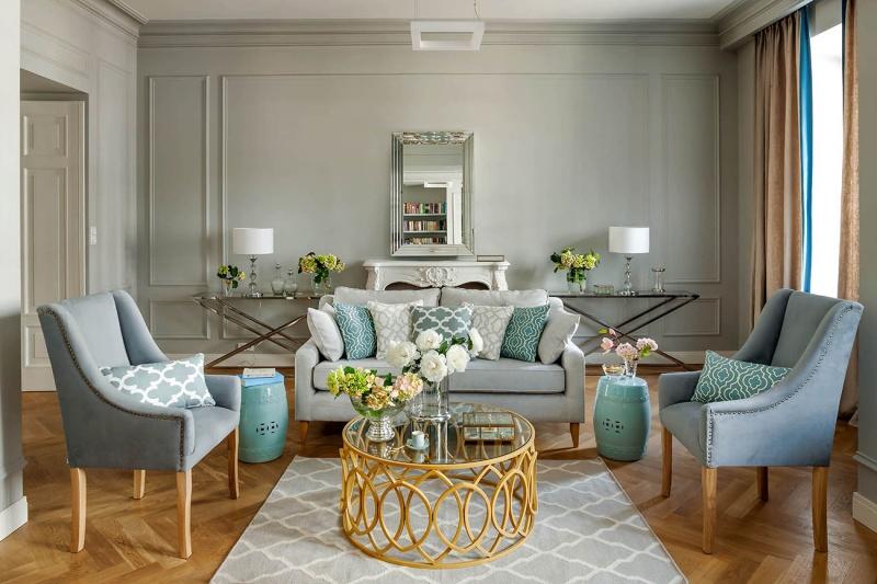 Amerykańska aranżacja rządzi się swoimi zasadami. Jest oparta na symetrii, co w praktyce oznacza, że prawie każdy przedmiot ma swojego brata bliźniaka. Ten prosty trik jest siłą tego stylu. We wnętrzach utrzymanych w stylistce american glamour deseniem królującym jest szewron, który doskonale prezentuje się zwłaszcza na tkaninach, jak poduszki czy dywany. Niezwykłą zaletą tego wzoru jest jego uniwersalność – doskonale uzupełni zarówno wnętrze klasyczne, jak i nowoczesne.