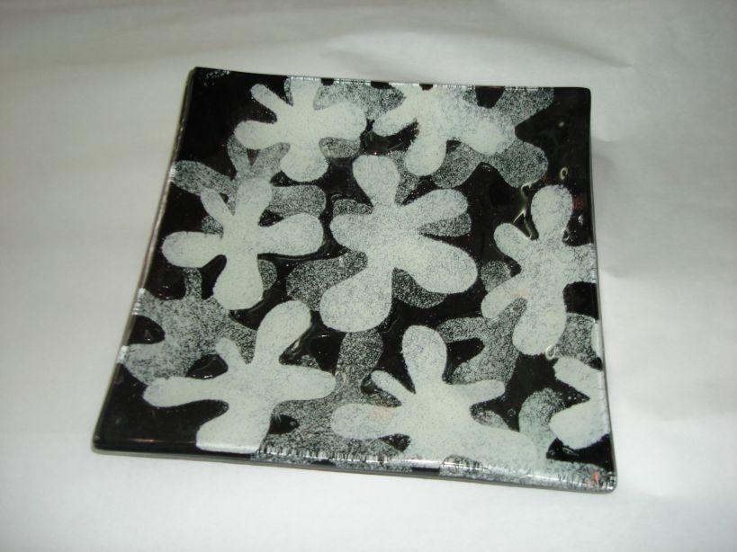 Czarno białe wzory z powodzeniem można zastosować nie tylko na ścianie, lecz również na drzwiach czy też w postaci mebli czy dodatków np. wazony, patery, świeczniki. Propozycją od Villa Glass Studio są ręcznie malowane szklane dodatki. Dowolny wzór można namalować na płaskiej szklanej tafli, bądź skorzystać ze szkła fusingowego.
