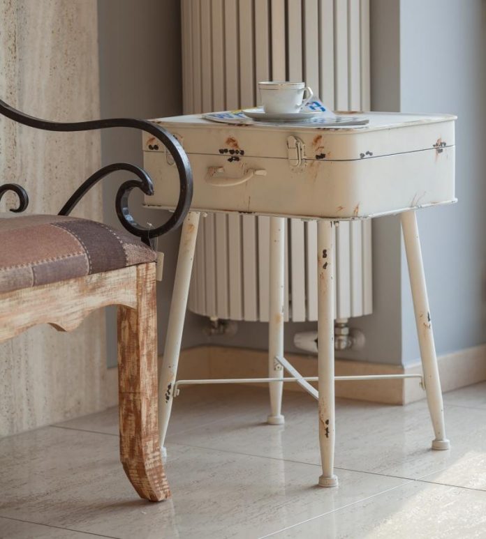 Stolik-walizka ALURO Lamali. Ciekawy dodatek inspirowany stylem industrialnym. Prostota, minimalizm i chłodna kolorystyka z zamierzonym efektem niewykończenia sprawdzą się każdym wnętrzu jako mebel z duszą „z innej epoki”. To stolik i praktyczny schowek w jednym. Doda uroku każdemu pomieszczeniu.