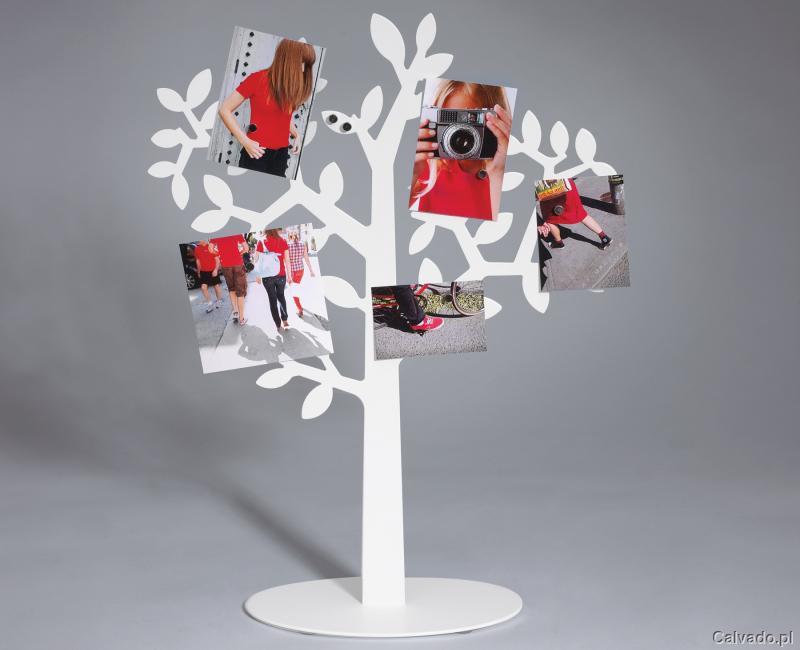 Metalowy stojak na zdjęcia i wiadomości w kształcie drzewka. Fotografie są mocowane do powierzchni stojaka za pomocą magnesów. W zestawie ze stojakiem znajduje się 6 magnesów.