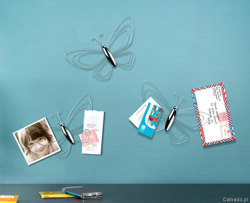 i wiadomości montowane na ścianie w kształcie ażurowych srebrnych motyli, w których giętkie skrzydła można włożyć ulubione zdjęcie, notatkę lub pocztówkę otrzymaną od bliskiej osoby.