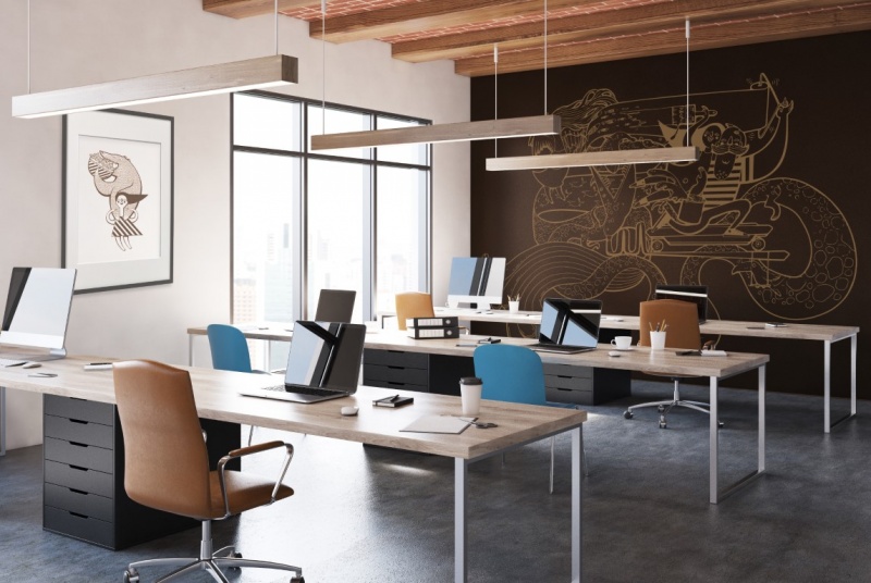 Drugim istotnym elementem decydującym o komforcie w biurze jest światło. Potrafi ono wpływać zarówno pozytywnie, jak i negatywnie na samopoczucie, kreatywność, poziom relaksu i energii. W ludzkim oku znajdują się trzy receptory odpowiedzialne za odbiór natężenia i temperatury barw światła. Reagują na naturalną zmianę światła w otoczeniu i w zależności od długości fali, wpływają na nasze pobudzenie lub uspokojenie. Światło zimne wyzwala w nas więcej energii, sprzyja koncentracji, skupieniu, nauce i pracy. Światło o barwie ciepłej relaksuje, odpręża, przygotowuje do snu, wycisza. Nie bez znaczenie będzie więc wybór odpowiedniego oświetlenia w biurze. I powinno być ono zróżnicowane w zależności od stref użytkowania.