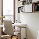 Jest kilka trików, które są bardzo pomocne w aranżowaniu małych przestrzeni, także na potrzeby małego biura, czy ogólnie miejsca do pracy. W swoim projekcie postawiłam na specjalny “parapet” wbudowany w ścianę. Cały sekret polega na tym, że to nie tylko półka w bliskim sąsiedztwie biurka, ale przede wszystkim wnęka po drugiej stronie ściany w której wbudowana jest komoda. To rozwiązanie idealne – oba pokoje zyskują, żaden nie traci.