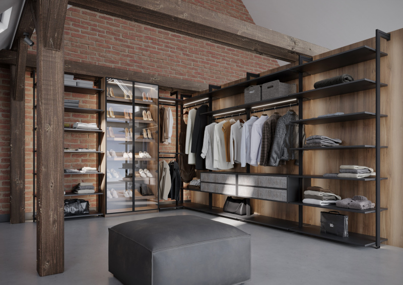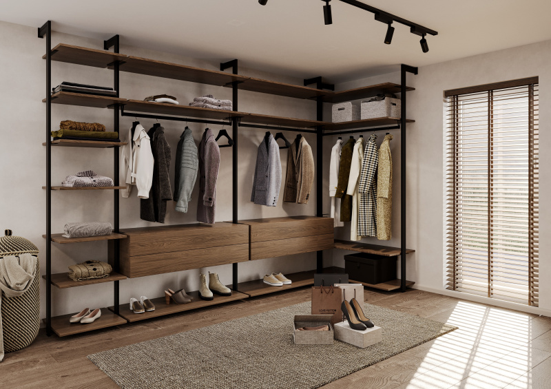 Każdy marzy o funkcjonalnej garderobie, w której ubrania są poukładane jak w ekskluzywnym butiku. System Orto pozwala na stworzenie przestrzeni idealnie dopasowanej do Twojej kolekcji – możesz zaplanować półki na buty, drążki na sukienki, a nawet eleganckie kontenery na dodatki. Otwarta, ażurowa konstrukcja nie tylko świetnie wygląda, ale także ułatwia utrzymanie porządku. To dobra alternatywa dla tradycyjnych garderób, zwłaszcza w nowoczesnych apartamentach i loftach. Zaprojektuj samodzielnie swoją garderobę w systemie Orto w Aplikacji Designer Komandor. Skorzystaj z modułu AR i zobacz, jak wygląda w Twoim domu. A jeśli projekt Ci się spodoba, wyślij go do bezpłatnej wyceny do projektanta Komandor.