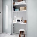 Jeśli potrzebujesz miejsca do pracy, a nie chcesz przeznaczać na nie całego pomieszczenia, stwórz swój mały gabinet za drzwiami przesuwnymi. Wykorzystaj drewnianą półkę Décor na elegancki blat, nad nim zaplanuj przestrzeń na duże przedmioty, a w wysuwanych koszach umieść dokumenty i drobiazgi. Po skończonej pracy ukryj swój tajemniczy gabinet za gustowną taflą, chociażby z mlecznego szkła. Oddziel sferę prywatną od zawodowej.