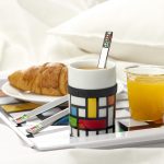 - Zestawy filiżanek do espresso,dostępne w różnych wzorach zainspirowanych stylem Pieta Mondriana.