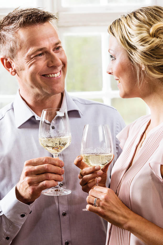 Aby stół wyglądał jeszcze bardziej wytwornie, warto sięgnąć po eleganckie szkło. Kieliszki oraz szklanki o subtelnym, wijącym się wokół czaszy wzorze, idealnie uzupełniają zastawę i współgrają z serwisem Ingrid. Przy nakrytym w ten sposób stole, każdy z pewnością poczuje się wyjątkowo i zapamięta te uroczyste chwile na długie lata.