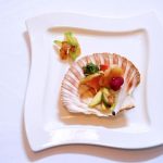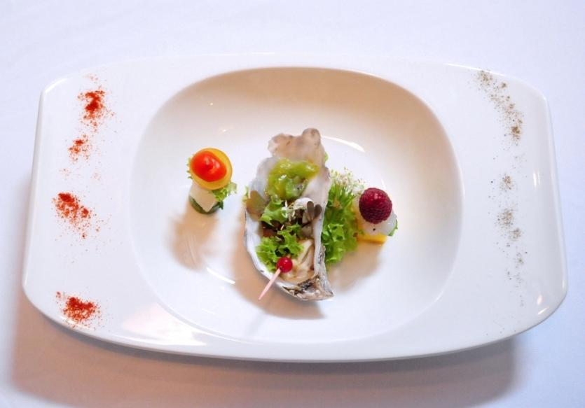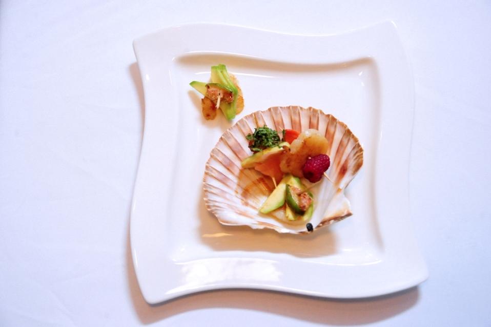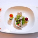 Królik z espumą i przegrzebki kompresowane w ziołach i oliwie z pestek awokado