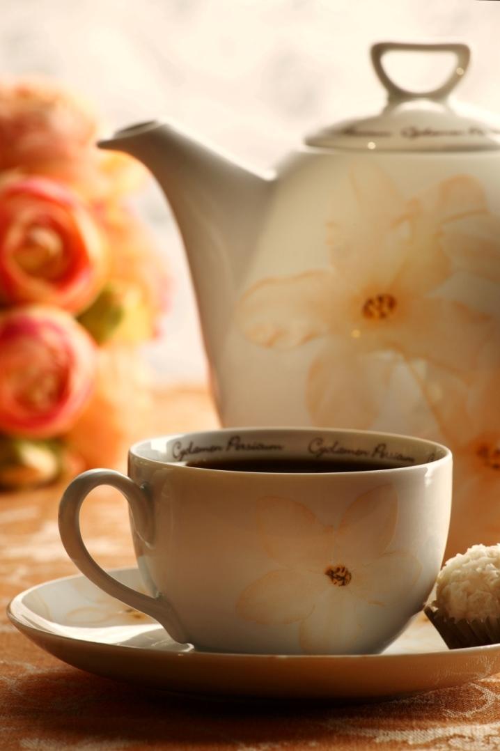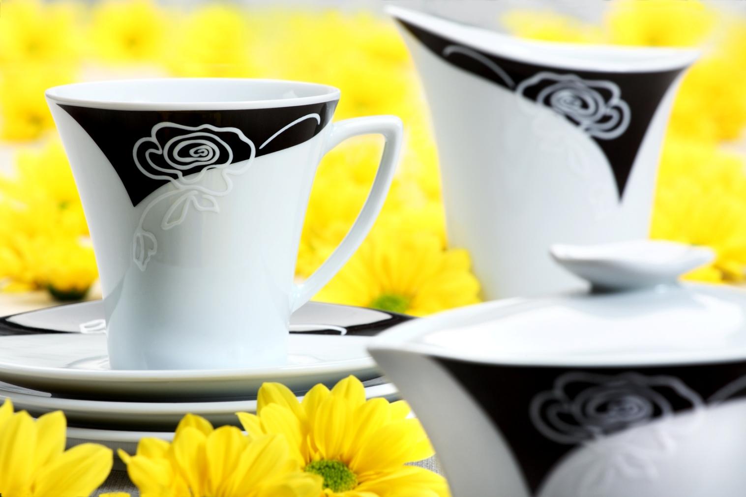 Cóż bardziej może odświeżyć wnętrze, jeśli nie przedmioty inspirowane naturą? Doskonałym dowodem na jest to jest serwis porcelanowy Happa. Już sama nazwa fasonu to po prostu japońskie słowo „liść”. W ten sposób serwis nie tylko sugeruje naśladownictwo występujących w przyrodzie kształtów, ale także subtelną, wschodnią estetykę. Modernistyczna forma naczyń, których brzegi zwężają się z jednej strony i rozchylają z drugiej, przekonywująco imituje swobodny kształt liścia. Urok serwisu tworzy też florystyczna dekoracja „Róża” wymalowana na czarnym tle. Prostota wyrazu zestawione z finezyjnymi liniami naczyń nadają porcelanowym elementom niebanalnej elegancji. Natomiast połączenie serwisu z kwiatowym przybraniem stołu, sprawia, że imbryki, filiżanki i talerzyki z serwisu Happa, nabierają charakterystycznej frywolności i doskonale komponują się z naturalną scenerią.