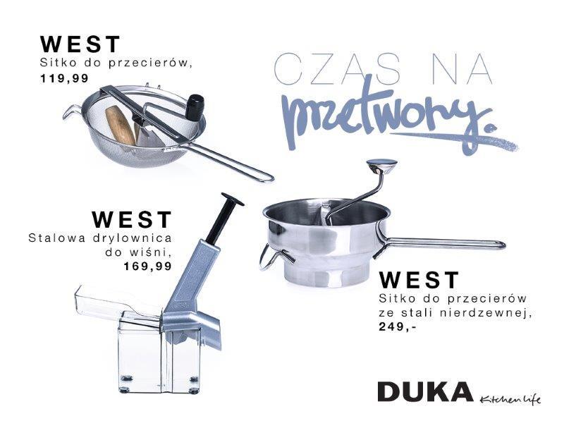 Kolekcja WEST to rozbudowana kolekcja produktów do przetworów. Sitka do twardych i miękkich przecierów umożliwiają pewne i bezpieczne oparcie ich na garnkach oraz miskach. Drylownica wyposażona w duży kosz oraz pojemnik na pestki gwarantuje wydajność drylowania aż do 15 kilogramów owoców na godzinę.