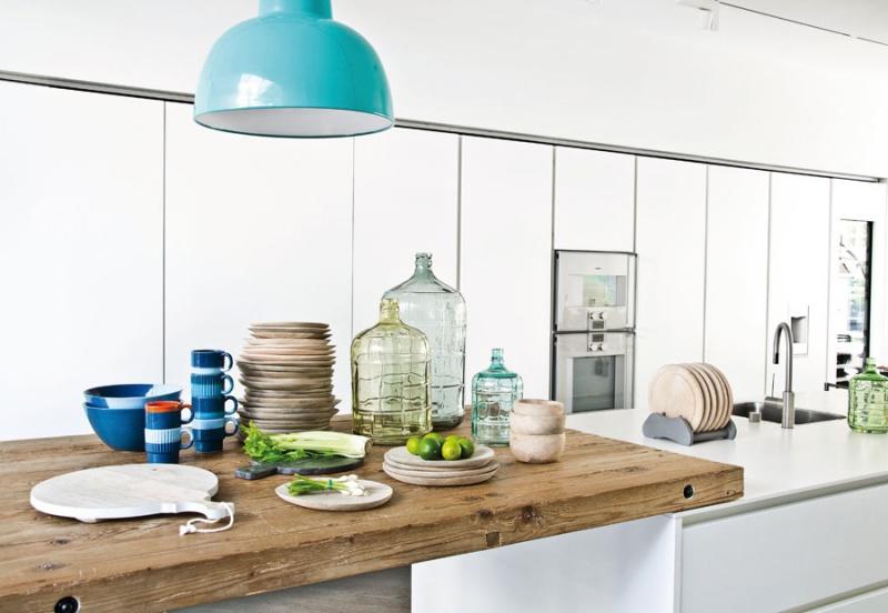 A to światło właśnie gra w skandynawskim wnętrzu ogromną rolę. Najlepiej, żeby było naturalne, dlatego okna pozostają nieosłonięte, by jak najwięcej promieni wpadało do pomieszczenia. Jako że domeną stylu scandi jest naturalność, w kuchniach bardzo często pojawiają się świeże zioła w ozdobnych doniczkach, funkcjonalne dodatki wykonane z drewna, jak np. deska do krojenia czy blok noży.