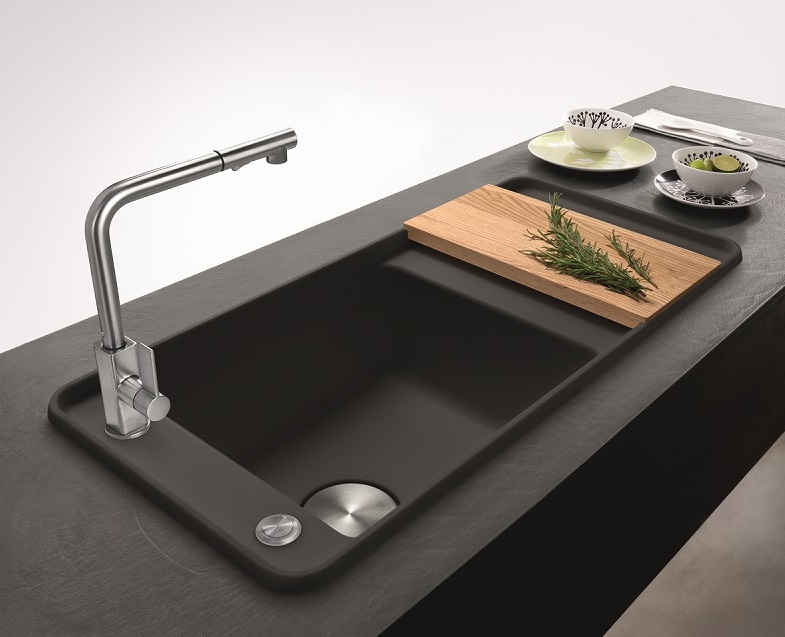 Do neutralnej, eleganckiej formy zlewozmywaka pasuje wiele modeli baterii kuchennych, szczególnie chromowane, geometryczne formy baterii np.: KWC Sin Pull-Out lub Franke Quantum One tworzą razem ze Style zgrany duet.