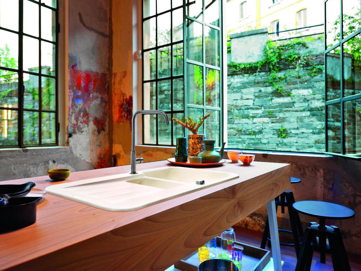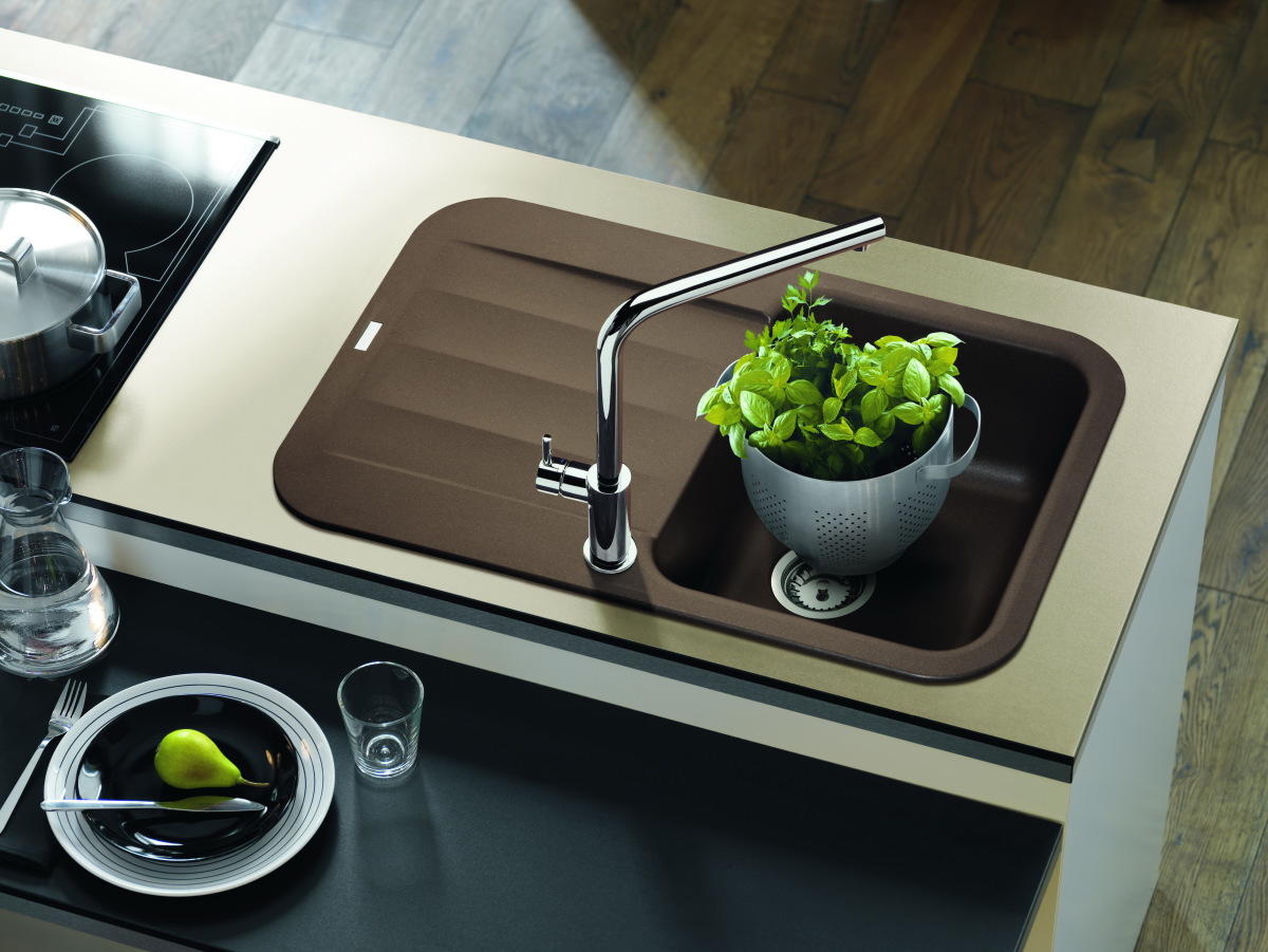 Delikatny kremowy odcień kuchennego zlewozmywaka doskonale komponuje się zarówno z jasnymi, kamiennymi blatami jak również wszelkimi odcieniami drewna. Intensywny czekoladowy brąz świetnie harmonizuje z nowoczesnymi wnętrzami, może być konsekwentnym dopełnieniem monochromatycznej kuchni albo oryginalnym akcentem dekoracyjnym, który nie pozostanie niezauważony.