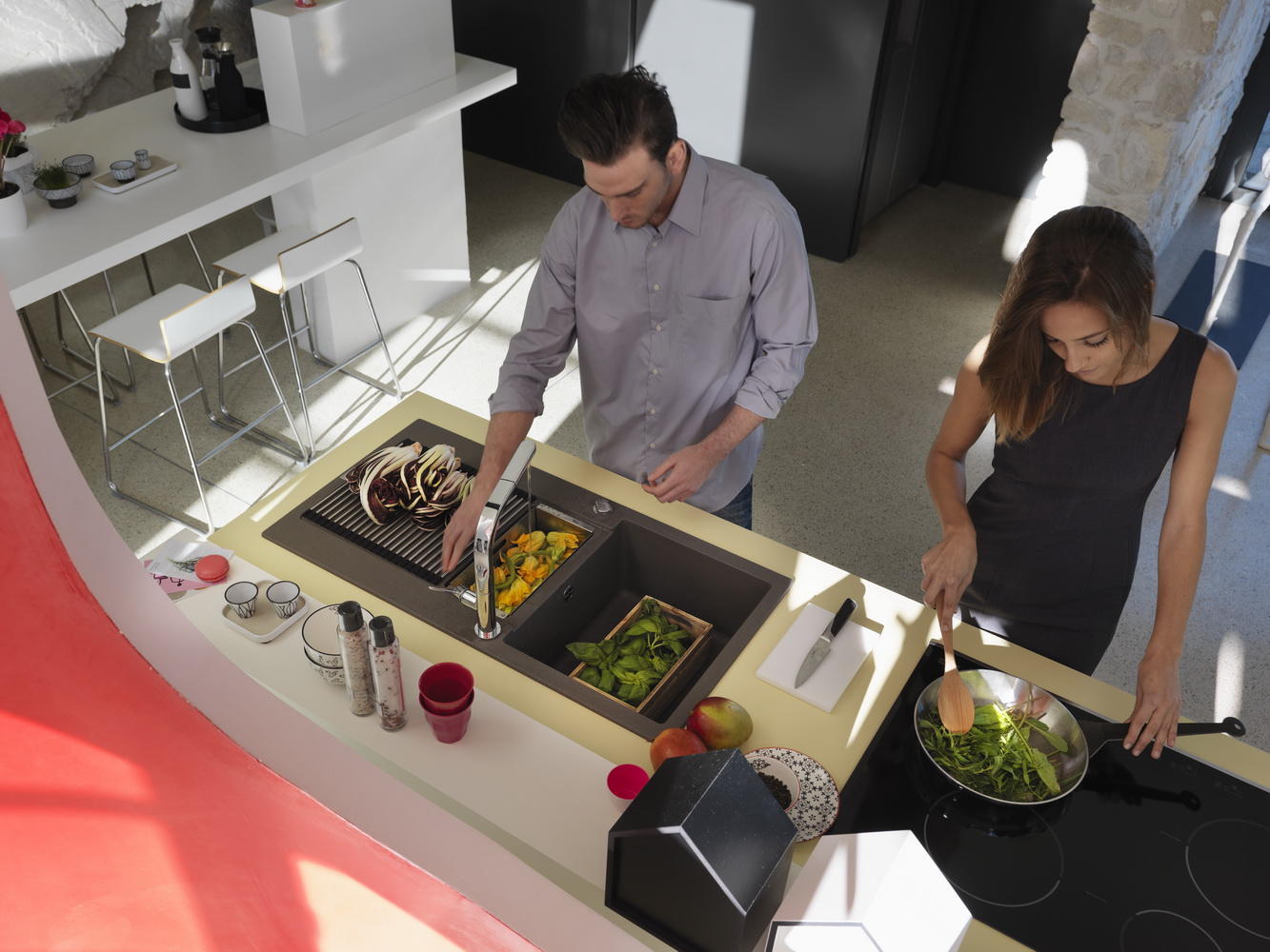 Zgrany duet Franke: zlewozmywak Maris oraz bateria Sinos to zaproszenie do wspólnego gotowania, do celebracji czasu, który spędzamy razem przy błahych, codziennych czynnościach i dzięki temu te zwykłe chwile, jak uchwycone w kadrze zdjęcia nabierają osobistego znaczenia.