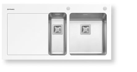 Wysokie wymagania estetyczne dotyczą także strefy zmywania. Wychodząc na przeciw tym oczekiwaniom marka Pyramis wprowadziła do oferty serię zlewozmywaków Crystalon. Modele te wyróżnia wykończony niezwykle wytrzymałym hartowanym szkłem rant i ociekacz. Szkło występuje w wybarwieniu czarnym lub zimnej bieli. Wytrzymałość na uderzenia dodatkowo podnosi zastosowana na powierzchni ośmiomilimetrowa warstwa szkła stosowanego m.in. w tabletach i smartfonach. Dzięki temu ociekacz służyć może jako miejsce do wykonywania dodatkowych prac kuchennych. Komora modelu Crystalon wykonana jest z najwyższej jakości stali szlachetnej, która doskonale komponuje się ze szklanym ociekaczem tworząc nowoczesną i wyjątkowo estetyczną całość. Zlewozmywak dostępny jest w wersji jedna, półtorej i dwie komory w cenie zaczynającej się od 4399 zł.