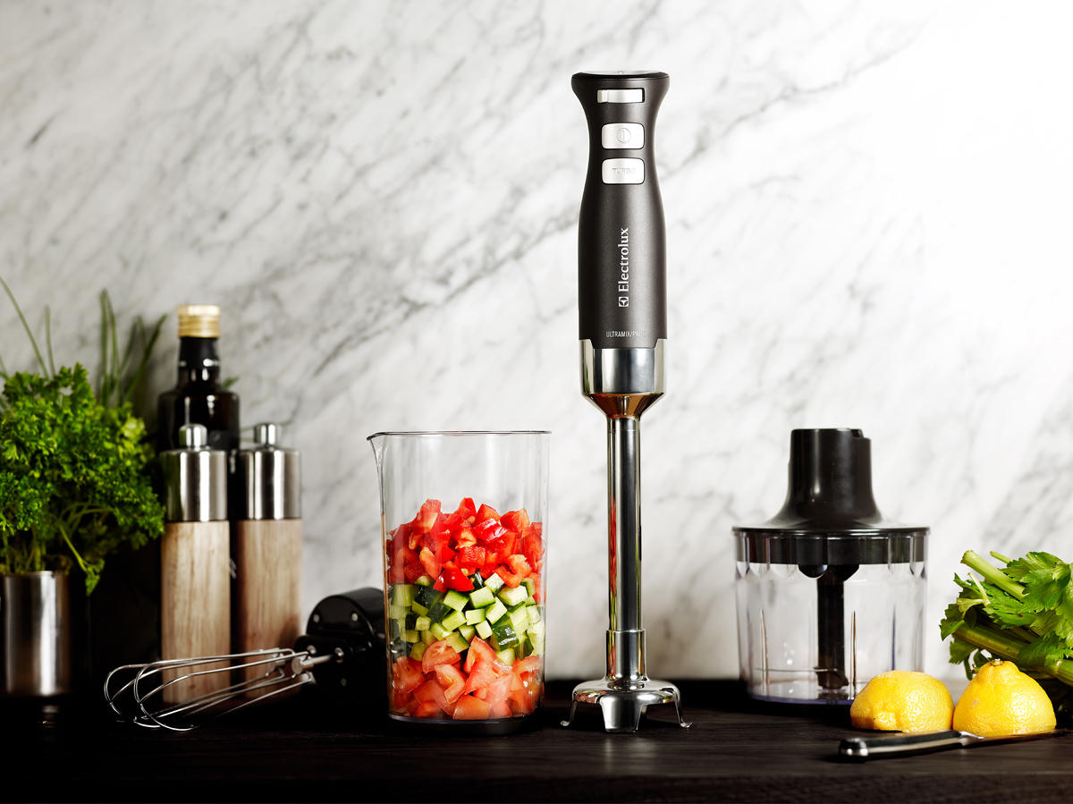 Nowy blender ręczny Electrolux Ultramix/PRO powstał w oparciu o doświadczenie firmy Electrolux zdobyte podczas tworzenia urządzeń profesjonalnych dla czołowych szefów kuchni. Wykorzystano w nim najlepsze cechy blenderów profesjonalnych, takie jak potrójne noże pozwalające uzyskać kremową konsystencję, bardzo długie ramię miksujące i specjalny kształt mieszadła. Wszystko po to, aby pasjonaci gotowania mogli we własnym domu osiągać profesjonalne rezultaty.