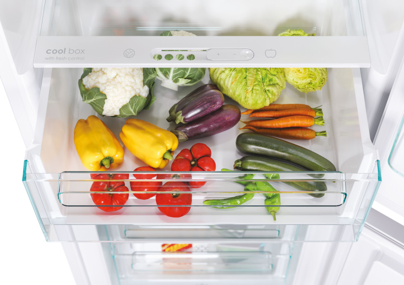 Prawidłowe rozmieszczenie żywności w lodówce ma duże znaczenie dla zachowania jej właściwości odżywczych. Na najwyższej półce powinny znajdować się produkty o dłuższych terminach trwałości, środkowe powierzchnie to idealne miejsce na nabiał, natomiast dolna przestrzeń to najzimniejsze miejsce w chłodziarce i należy umieszczać na nich mięso, ryby oraz pokrojone owoce i warzywa. W nowej chłodziarko-zamrażarce Candy Fresco możesz dostosować wnętrze urządzenia do swoich potrzeb właśnie po to, by zapewnić maksymalną funkcjonalność oraz zachować jak najdłużej wartości odżywcze produktów. Pięć półek w chłodziarce, w tym specjalna do przechowywania szklanych butelek, zapewni nie tylko porządek, ale również pomóc w odpowiednim umieszczeniu produktów w urządzeniu, tak, by zachowały świeżość na dłużej. Wysokość półek jest elastyczna, a ich układ można zmieniać na wiele sposobów, by zawsze optymalnie zarządzać zgromadzoną żywnością. System modułowy pozwala na konfigurację wnętrza lodówki, dopasowując ją do codziennych potrzeb użytkownika na 100 różnych kombinacji układu półek i balkoników. Co więcej, producent daje możliwość zainstalowania drzwi z dowolnej strony, zapewniając najlepsze wkomponowanie urządzenia w domową przestrzeń. W chłodziarko-zamrażarce Candy oprócz półek i balkoników znajduje się również specjalna komora przeznaczona do przechowywania owoców i warzyw, tak by zagwarantować najbardziej optymalne warunki dla świeżych produktów. Z kolei w zamrażarce do dyspozycji są 3 szuflady, które pozwolą znacznie lepiej uporządkować przechowywaną żywność.