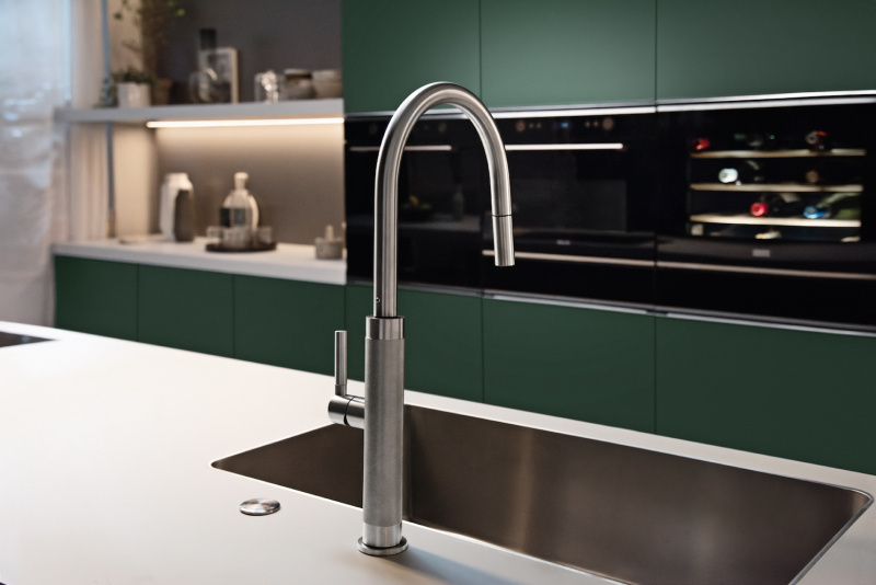 Designerska kuchnia jest elegancka na miarę salonu, z którym często sąsiaduje. Niezbędne rozwiązania techniczne stają się tu niewidoczne, choć wygoda jest zawsze w zasięgu ręki. To podejście świetnie ilustrują baterie filtrujące Maris Slim Clear Water. Klasyczna dźwignia po prawej stronie uruchamia wodę ciepłą i zimną, a przycisk na końcu ergonomicznej, wyciąganej wylewki – wodę filtrowaną. Proste i pięknie zaprojektowane rozwiązanie pozwala zrezygnować z nieekologicznych i nieestetycznych zgrzewek wody butelkowanej, jakie wciąż zalegają w wielu kuchniach. – Ta wielofunkcyjna bateria trójdrożna może być zarazem akcentem wybranego koloru. Do wyboru jest tu chrom, stal optyczna, złoto, miedź, antracyt i matowa czerń. Zdrowie domowników ich wygoda oraz ekologia mogą więc pozostać w doskonałej harmonii z estetycznym wyrafinowaniem domu – podkreśla Katarzyna Niezabitowska-Baj.
