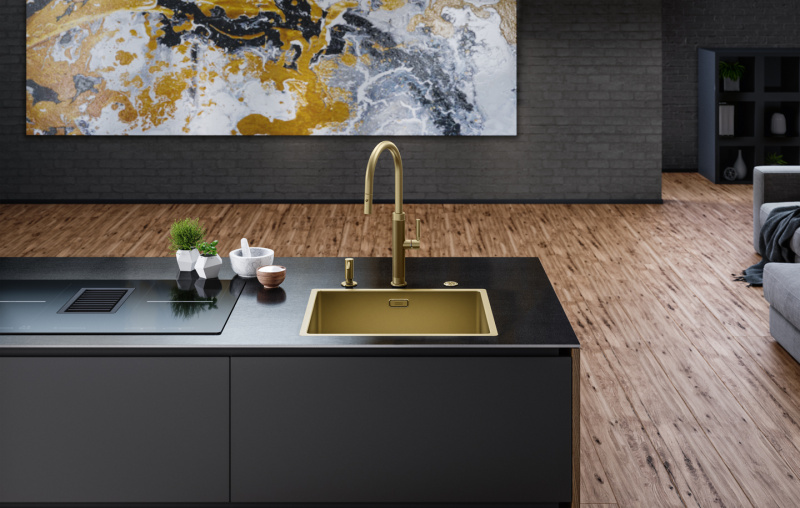Te baterie kuchenne jak mało które zasługują na miano biżuterii dla wnętrza. Wyróżnia je korpus zdobiony grawerunkiem oraz wysoki, wysmukły łuk wylewki. Stanowią więc akcent, który natychmiast przyciąga wzrok, tak jak najpiękniejszy klejnot. Do wyboru jest tu kilka odcieni. Złoto wniesie szyk stylu glamour, miedź – klasyczną elegancję lub akcent stylu retro, stal szlachetna – element industrialny albo minimalistyczny, natomiast antracyt wpisuje się w stylistykę nowoczesną bądź loftową. – Metaliczne odcienie świetnie współgrają z kamieniem, drewnem czy gładkimi, matowymi frontami mebli. Dopełnią więc dosłownie każdą wyrafinowaną aranżację, a skromnej, neutralnej zabudowie kuchennej dodadzą wyrazu. Zwłaszcza gdy bateria pojawi się w komplecie z dopasowanym do niej kolorystycznie zlewozmywakiem oraz dozownikiem mydła i przyciskiem korka automatycznego – radzi ekspertka Franke.