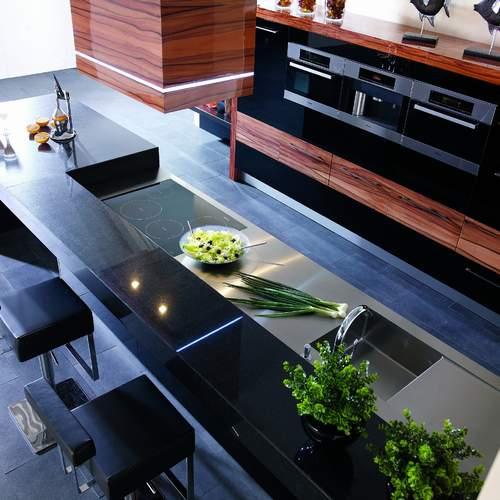 Drewno uwodzi od wieków- komentuje wybory klientów Albert Kaleta z Mebel Rust. Niewiele jest materiałów, które potrafią nadać każdemu wnętrzu naturalnego ciepła. Zaletą drewnianego blatu jest jego naturalny wygląd, nadaje on kuchni przyjazny charakter. Blaty z tego materiału niewątpliwie mają swój urok, choć są trochę trudniejsze w pielęgnacji. -Blaty, aby były wytrzymałe, wykonuje się z twardego drewna drzew liściastych. Przy projektowaniu kuchni Detroit uznaliśmy, że najlepszym materiałem będzie olejowany orzech amerykański. Naturalne oleje, którymi zaimpregnowany jest blat, zabezpieczają przed wnikaniem wilgoci czy też zaplamieniami powierzchni roboczej. Poza właściwościami fizycznymi chcieliśmy zaskoczyć klientów jego widoczną grubością, która wynosi zaledwie 1cm. Dzięki temu blat jest delikatnym dopełnieniem aranżacji Detroit, będącej odpowiedzią na potrzeby osób poszukujących niesztampowych rozwiązań. Doskonałym materiałem na blat kuchenny jest też stal, która daje szerokie spektrum możliwości. Umieszczenie komory zlewu w blat roboczy daje gwarancje spójności formy oraz umożliwia praktyczne i bezpieczne użytkowanie strefy tzw. mokrej w kuchni. Stalowe blaty są często wybierane do aranżacji nowoczesnych wnętrz kuchennych. Stal podkreśla ich ascetyczną i minimalistyczną elegancję.