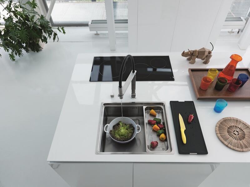 Wybrane modele zlewozmywaków wbudowywanych zaprojektowane zostały w taki sposób, że można je zarówno wbudować w blat lub zamontować na równi z blatem. Uwaga – montaż na równi z blatem możliwy jest tylko w blatach kamiennych lub kompozytowych. Sekretem tego rozwiązania są innowacyjne, prawie idealnie płaskie krawędzie typu Slim Top. Przykładem takiego rozwiązania są Franke Centinox oraz serie Planar i Delta, które idealnie pasują do nowoczesnych, minimalistycznych kuchni.