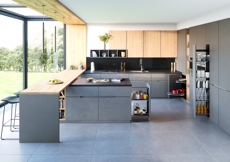 Wybrane produkty REJS, takie jak uchwyty, kornery, carga i szuflady dostępne są obecnie w uniwersalnej powłoce chromowej, ale także w czystej bieli, głębokiej matowej czerni lub antracycie. Co ważne np. w przypadku systemów do szafek narożnych Corner Comfort i Corner Front, w czerń ubrane są nie tylko płyty stanowiące dna półek, ale również stelaż. Podobnie systemy szuflad Slim Box, które wyróżniają się wyjątkowo cienkimi boczkami, utrzymane są w modnej ciemnej szarości w całości. Podobnie zresztą jak dedykowane tej linii organizery i szklane wstawki frontowe. Tak skonstruowana oferta pozwala dobrać akcesoria do każdej zabudowy, bez obaw o niepotrzebne dysonanse.