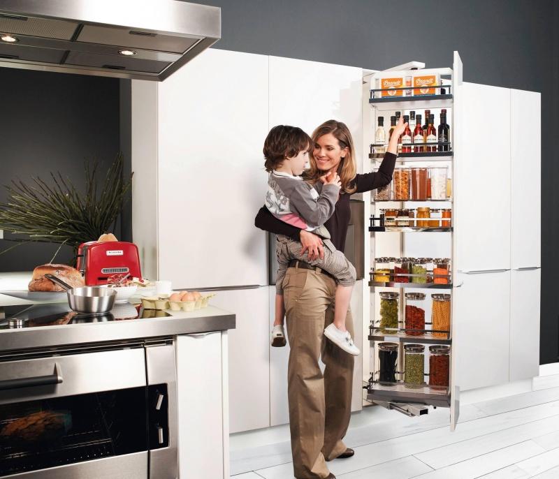 W kuchni młodych rodziców ważną rolę odgrywa kwestia przechowywania. Muszą się w niej pomieścić nie tylko garnki, patelnie i przeróżne akcesoria, ale też liczne produkty spożywcze. Tych szczególnie przybywa, gdy dzieci są jeszcze małe i nie mogą jeść „dorosłego” jedzenia. Puszki, słoiczki i opakowania muszą być schowane, a przy tym łatwo dostępne w razie potrzeby. – W takim przypadku sprawdzają się rozwiązania, które pozwalają maksymalnie wykorzystać dostępne w kuchni miejsce. Cargo lub wysuwane półki do nie w pełni zagospodarowanych szafek narożnych – mówi Jakub Malinowski, ekspert ds. okuć meblowych w firmie Häfele. Równie ważne, co wygospodarowanie miejsca, jest zadbanie o płynny ruch mebli i wygodę – szczególnie młodej mamy. Dlatego należy wybierać rozwiązania ułatwiające dostęp do zawartości mebli i przygotowanie posiłku.