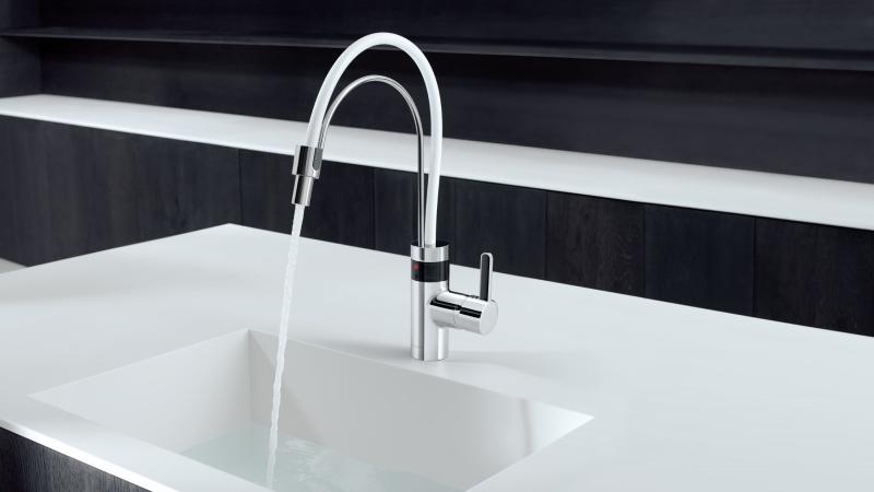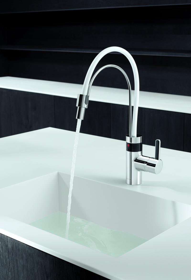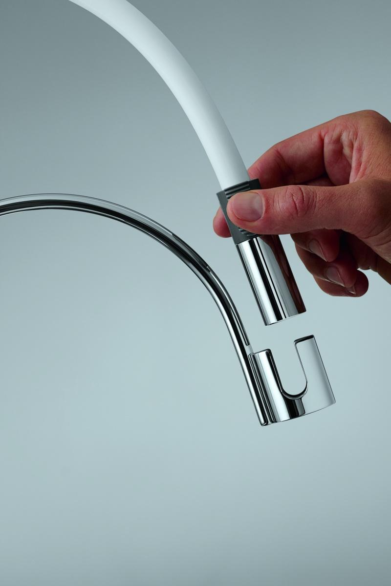Jednym z nieodzownych elementów designerskiej kuchni będzie z pewnością bateria elektroniczna KLUDI E-GO – idealne połączenie stylu i funkcjonalności. Wyjątkowy design armatura zawdzięcza podwójnej linii wylewki o organicznym kształcie. Oprócz niepodważalnych walorów estetycznych, KLUDI E-GO gwarantuje komfort pracy w strefie zlewozmywaka. Wysokość baterii pozwala wykorzystywać duże naczynia, a także swobodnie myć owoce, warzywa oraz inne półprodukty niezbędne do przygotowania posiłków. Co więcej, czynności tej możesz dokonać bez dotykania uchwytu. Dzięki sensorowi armatura włącza i wyłącza się automatycznie. Elektroniczny czujnik ruchu sprawia, że korzystanie z baterii jest wygodne oraz bezproblemowe nawet w sytuacji kiedy obie ręce są zajęte. Mówiąc w skrócie – KLUDI E-GO „myśli” za Ciebie, pomaga także w oszczędzaniu wody oraz ułatwia utrzymanie czystości w kuchni.