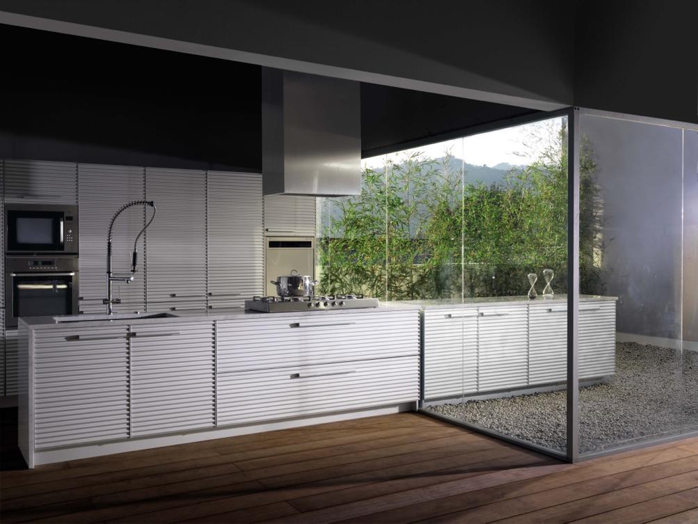 Model Cinqueterre marki Schiffini to pierwsza kuchnia wykonana w całości z aluminium. Metalowa jest nie tylko konstrukcja korpusów, ale też wykończenie frontów. Dzięki zastosowaniu tego materiału kuchnia jest całkowicie wodoodporna, higieniczna i niezwykle trwała.