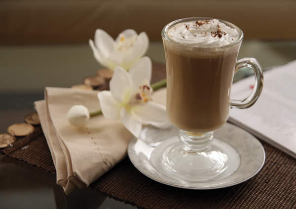 Irish coffee – podawana w specjalnych ceramicznych wysokich i wąskich kubkach z uszkiem lub w irlandzkich szklankach do whisky. Do szklanki należy wlać nieco whisky i kawę, dodać brązowy cukier, a na wierzch nałożyć bitą śmietanę utartą z kilkoma kroplami ekstraktu waniliowego. Podawać natychmiast.