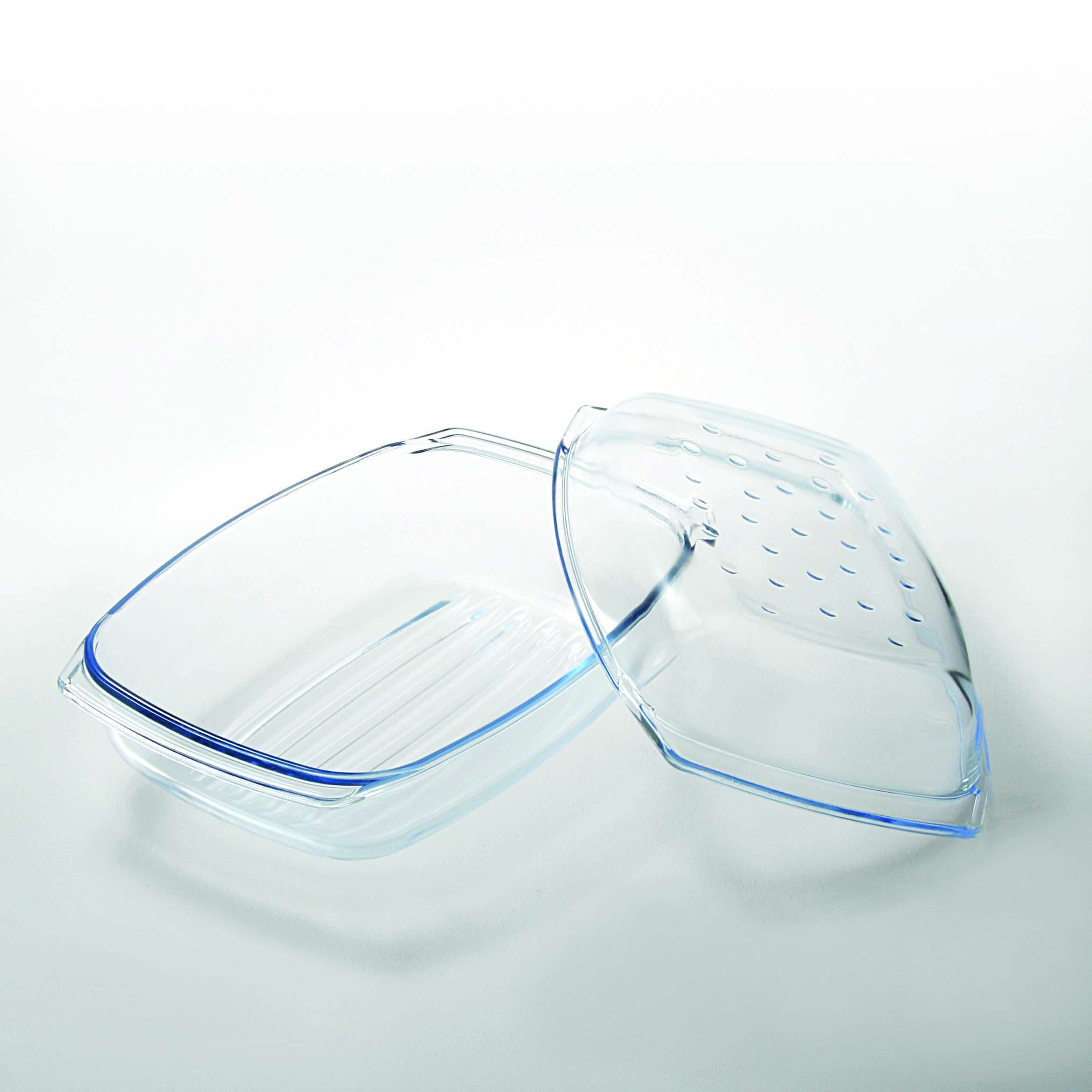 Naczynie żaroodporne Grill&Drop to produkt zarówno dla amatorów kuchennych zmagań, jak i dla doświadczonych kucharzy. Szkło (Termisil) borowo-krzemowe z jakiego zostało wykonane, jest odporne na zarysowania i skrajne temperatury (od -50°C do +500°C), co czyni je wyjątkowo funkcjonalnym i uniwersalnym. Szkło nie wchodzi w reakcje z żywnością i nie absorbuje zapachów. Dzięki niezwykłym właściwościom szkła boro-krzemowego gotowanie w naczyniu żaroodpornym Grill&Drop to wygoda i oszczędność czasu oraz pieniędzy. W jednym naczyniu można łatwo i szybko zarówno przyrządzić potrawę, jak i podać ją na stół, przechować w lodówce, odgrzać w mikrofalówce i bardzo łatwo umyć, również w zmywarce unikając rysowania i matowienia szkła. Nowoczesne wzornictwo produktu sprawia, że potrawy przygotowane w naczyniach żaroodpornych Grill&Drop marki Termisil można serwować na stół zaraz po przygotowaniu.