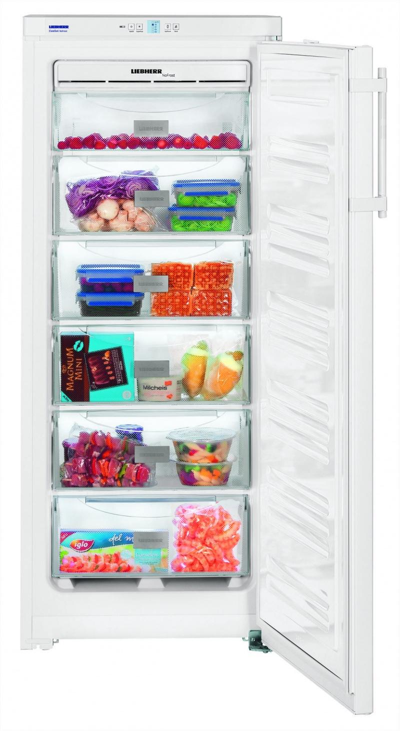 Dużą pojemność zamrażarki osiągnięto dzięki funkcji VarioSpace – szuflady można z łatwością wyjmować, dzięki czemu w prosty sposób można uzyskać więcej przestrzeni, nawet dla największych mrożonek. Zamrażarkę GN 2323 Comfort wyposażono w głębokie i wyjmowane szuflady z systemem FrostSafe, który zapobiega utracie zimna podczas otwierania urządzenia.