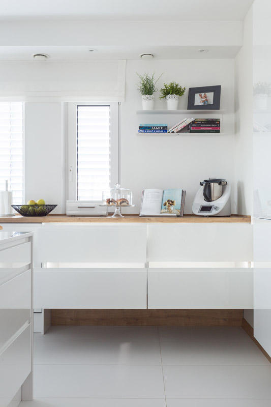 – Dlatego rosnącą popularnością cieszą się meblowe systemy drzwi przesuwnych. W odróżnieniu do frontów uchylanych, nie zajmują dodatkowej przestrzeni, gdy są otwarte – mówi Magdalena Dymek. – Rozwiązania, jak Finetta Flatfron, Spinfront lub Slido pozwolą też zamknąć bryłę kuchennej zabudowy i uczynić ją bardzo stylową.