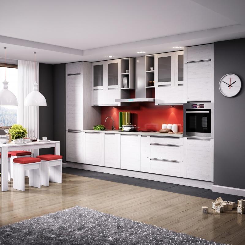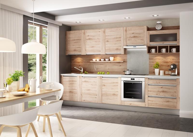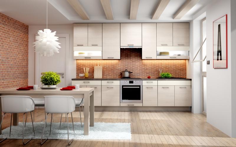 Meble i sprzęt AGD można ustawić w kuchni na jednej ścianie nie tracąc ani na funkcjonalności ani na estetyce pomieszczenia. Producenci mebli kuchennych przekonują o tym najnowszymi kolekcjami.