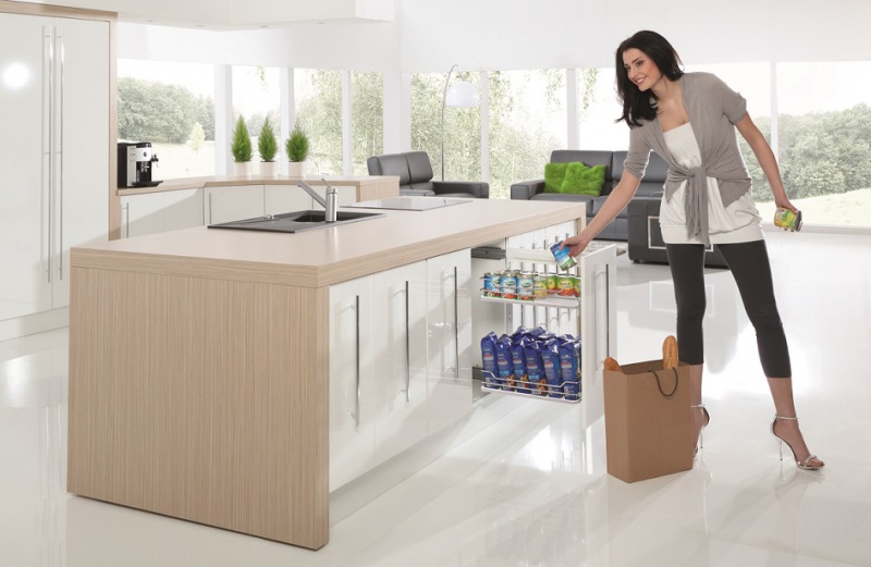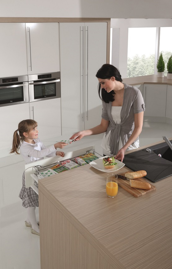 Systemy elektrycznego wspomagania sprawdzają się w szafkach i szufladach różnego typu i o różnym przeznaczeniu. Ich zastosowanie pozwala absolutnie bez wysiłku wysunąć nawet ciężką szufladę z systemem segregacji odpadów albo duże wysokie cargo (nawet te o maksymalnej ładowności 90 kg), a także otworzyć lodówkę czy zmywarkę w zabudowie. Zastosowanie dobrej jakości prowadnic gwarantuje płynny ruch, a mechanizm cichego domyku – koniec niepotrzebnego huku podczas zamykania frontów.