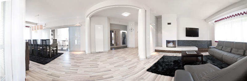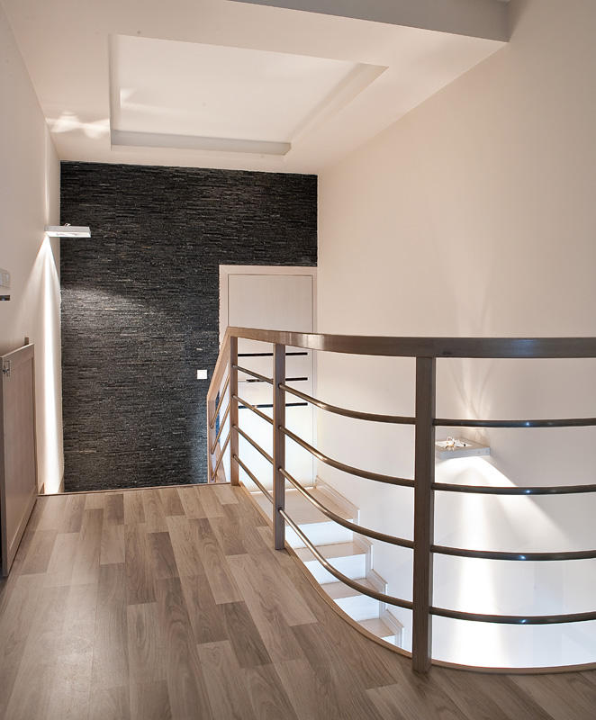 Przyglądając się wnętrzu centralnej części domu odczuwamy wrażenie wyciszonego, niemal minimalistycznego miejsca. To idealne tło dla energicznej i temperamentnej rodziny. Założeniem projektu było osiągnięcie wrażenia przestrzeni, w której nie dominuje żaden element. Bryła architektoniczna o powierzchni 350 m2 pozwalała na rozwinięcie wizji przestronnych, wyciszonych wnętrz.