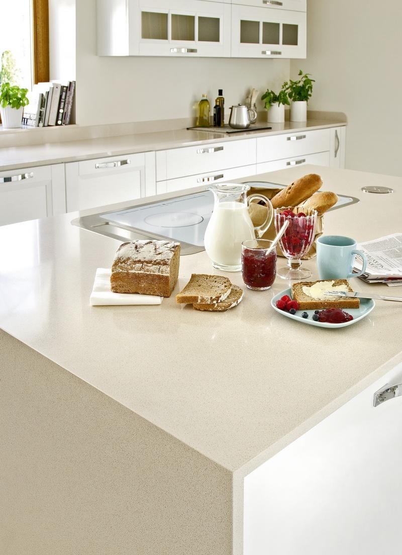 Indywidualny charakter kuchni doskonale podkreślą blaty z konglomeratu kwarcowego. Inspirujące kolory i wysoki poziom twardości materiału pomogą stworzyć wnętrze zarówno funkcjonalne jak i ekskluzywne. A wszystko dzięki właściwościom surowców z jakich powstał – kwarcu i granitu. Konglomerat kwarcowy posiada bardzo niski stopień nasiąkliwości, przez co mamy pewność, że blaty nie ulegną odbarwieniu, a plamy z herbaty czy wina usuniemy za pomocą zwykłej ściereczki kuchennej.