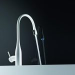 Nowa KWC ZOE zaskakuje również technologią Touch Light PRO TIPCONTROL. Z jej pomocą możemy zmieniać temperaturę i przepływ wody. Niebieski kolor oznacza wodę zimną, pomarańczowy ciepłą, a czerwony gorącą. By uruchomić tryb czyszczenia baterii wystarczy przytrzymać moduł przez 5 sekund.