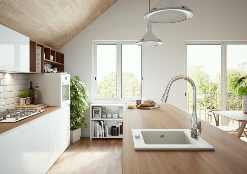 Rośliny w kuchni są zawsze miłym akcentem. Wyróżnią się na biało-szarym tle, stworzą kontrastowe kolorystycznie plamy i urozmaicą wystrój. Wiele roślin doniczkowych ma właściwości oczyszczające powietrze, co korzystnie wpływa na stan zdrowia domowników. W kuchni oprócz roślin ozdobnych warto także uprawiać zioła i przyprawy. Ustawione na parapetach, z dobrym dostępem do światła, w naturalnych ceramicznych doniczkach czy korytkach będą zawsze pod ręką, gdy zechcemy wypić pyszną herbatę ze świeżej mięty lub przyprawić właśnie ugotowaną zupę.