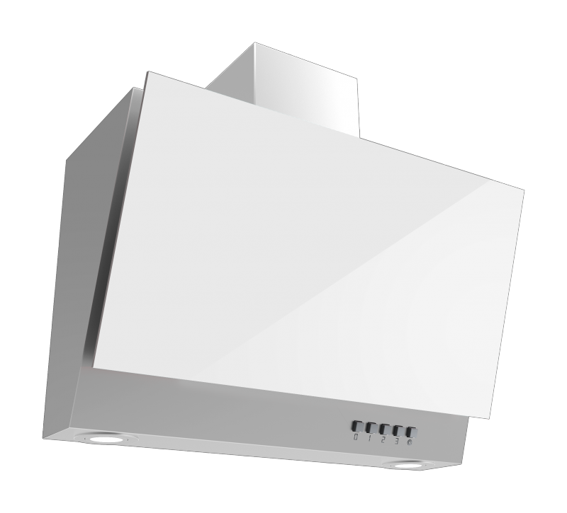 SBL to kominowy okap o skośnym kształcie i szerokości jedynie 60 cm. Tak optymalny rozmiar i forma pozwalają z łatwością wkomponować go w przestrzeń międzyszafkową wnętrza o niewielkich rozmiarach lub niskiej zabudowie meblowej. Urządzenie wykonano z wysokiej jakości stali nierdzewnej. Przednią część stanowi prostokątny panel z hartowanego szkła o gładkiej, jednolitej powierzchni. Poniżej szklanej tafli umiejscowiono wygodne sterowanie guzikowe – ergonomicznie zaprojektowane przyciski umożliwiają komfortową obsługę modelu. Dodatkowym atutem jest podwójne oświetlenie LED, które rozjaśni powierzchnię płyty grzewczej oraz nada wnętrzu ciepłego charakteru.