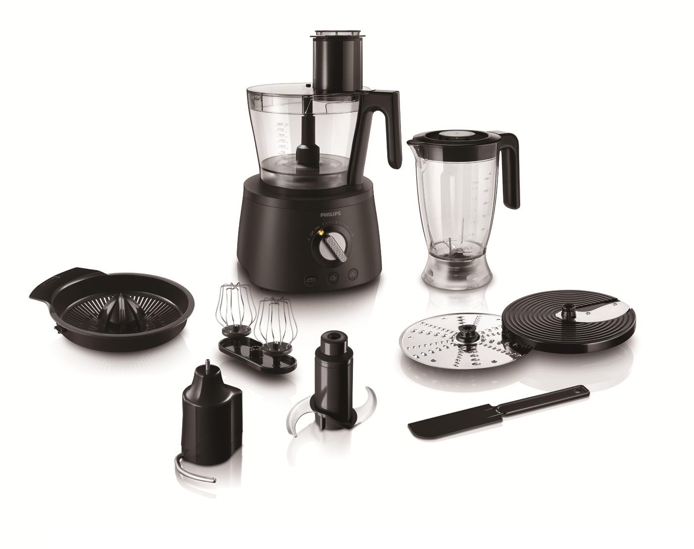 Philips oferuje także podstawową wersję prezentowanego robota kuchennego. Jest to Avance Collection HR7776 w kolorze czarnym, dostępny z kompletem akcesoriów: dwie tarcze do krojenia i szatkowania, blender, wyciskarka do cytrusów, końcówki do wyrabiania ciasta i ubijania białek. Wybierz ten, który sprosta Twoim oczekiwaniom!