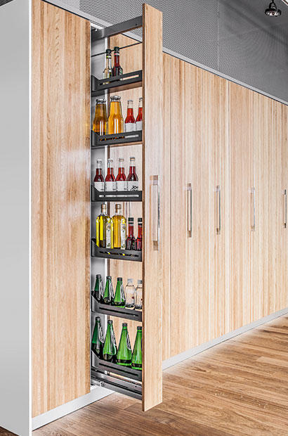 Sprytna kuchnia, czyli o przechowywaniu drobiazgów to inspirujący artykuł z cyklu Pomysł na…, z poradami dotyczącymi najefektywniejszego zagospodarowania przestrzeni szafek. W numerze znajdziemy także dział Inspiracje, a w nim artykuł dotyczący urządzania kuchni ukrytej za pomocą systemów HAWA. W dziale Porady Eksperta przeczytamy informacje o najnowszych rozwiązaniach systemowych, które sprawdzą się w przestrzeniach biurowych. Warto również zapoznać się z artykułem o strefie gospodarczej, prezentujący funkcjonalne akcesoria i rozwiązania.