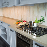 W rustykalnej kuchni istotną rolę ogrywają tradycyjne dekoracyjne. Nie może w niej zabraknąć ręcznie malowanej ceramiki, wiklinowych koszyków, czy kolorowych, wyszywanych tkanin, na których pojawiają się tradycyjne ludowe lub kwiatowe wzory. Pięknie prezentują się także misterne motywy koronkowe, np. w formie serwety. W tego typu aranżacjach często pojawiają się również takie materiały jak: kute żelazo, żeliwo, ceramika, miedź i oczywiście kamień – między innymi piaskowiec czy marmur. Blaty w beżowym odcieniu Noble Troya staną się doskonałym uzupełnieniem takich stylizacji. Drobne, ciemnoszare i białe smugi na jednolitym, szarym tle urozmaicają wygląd powierzchni, nadając jej wygląd charakterystyczny dla włoskiego marmuru. Aby dodatkowo podkreślić charakter wnętrza, warto pokusić się o wybór stylizowanego sprzętu AGD oraz kominek w obudowie z kamienia lub tradycyjny piec kaflowy. Całości dopełniają kwiaty i zioła, które nie tylko prezentują się atrakcyjnie, ale także wzbogacają smak potraw.