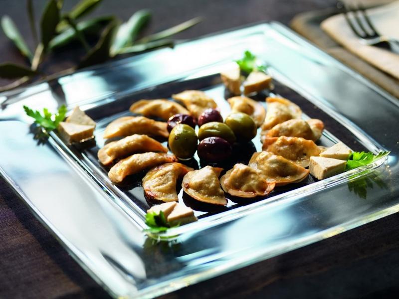 Przepis Franke na pieczone pierożki Panzarotti z tofu i oliwkami.
