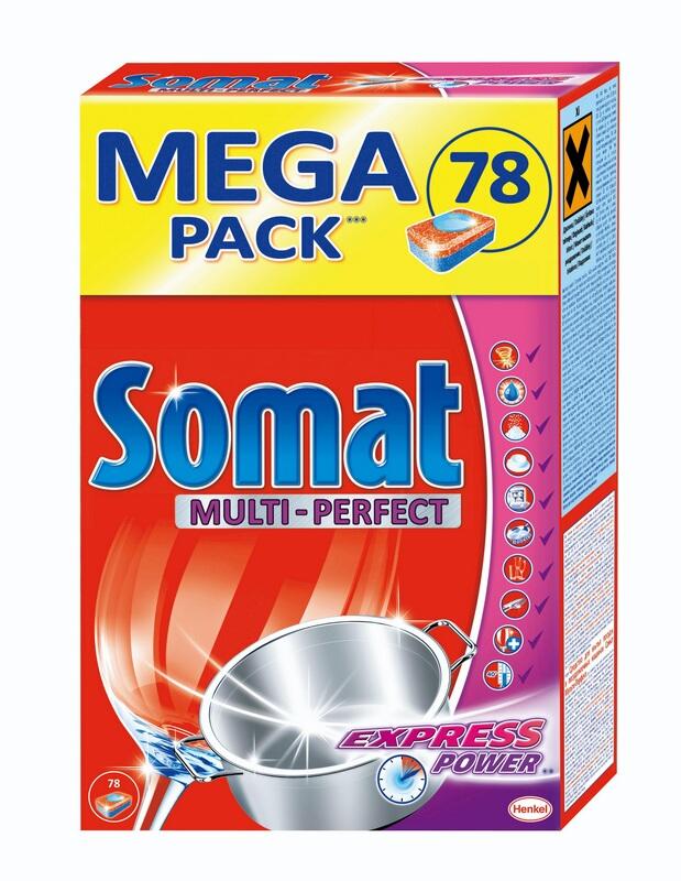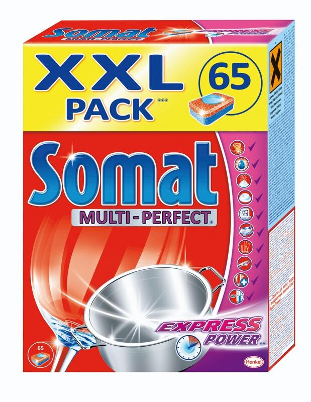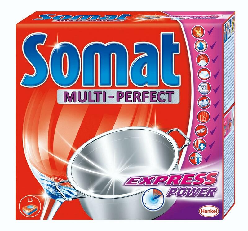 Nowością w recepturze Somat Multi-Perfect jest formuła Express Power. Dzięki niej tabletki rozpuszczają się szybciej. Dlatego nawet po myciu w krótkich i ekologicznych programach naczynia będą perfekcyjnie czyste.