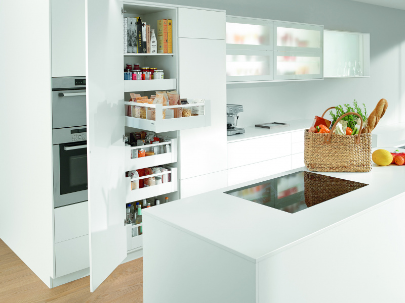 Miejsce potrzebne do przechowywania produktów spożywczych, sprzętów AGD i naczyń jest kwestią indywidualna. Jednak, zasada – im więcej, tym lepiej – sprawdza się praktycznie w każdym domu. Dodatkową przestrzeń, można uzyskać dzięki rozwiązaniom firmy Blum, które „wycisną” z kuchni niewykorzystane metry sześcienne. A przecież więcej miejsca w szafkach, to więcej wolnego blatu!