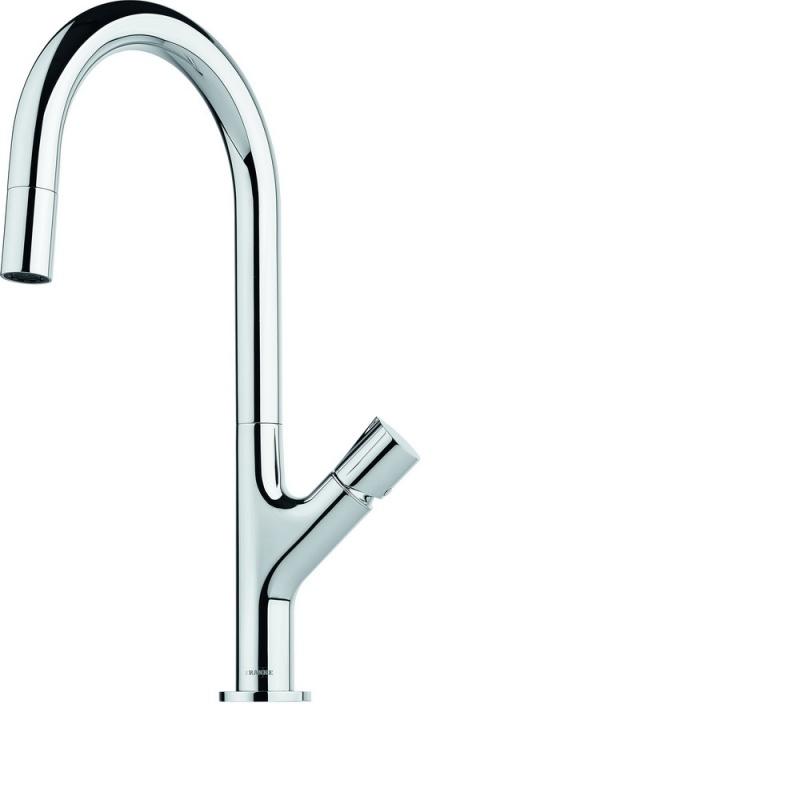 Bateria przyciąga uwagę i stanowi mocny element w kuchennej strefie wody. Jednak poza perfekcyjnym wzornictwem, jest ona również niezwykle praktyczna i poręczna. Ułatwia wszystkie codzienne prace w kuchni.