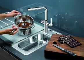 Teraz nie musimy czekać na gorącą wodę! Jeśli chcemy ugotować spaghetti, podgrzać zupkę dla dziecka lub zrobić czekoladowy deser – wystarczy… woda z kranu. Bateria Blanco Hot może zastąpić czajnik elektryczny. Na dodatek gorącą wodę dostarcza od razu. Przy tym jest bezpieczna dla dzieci, bowiem wyposażono ją w blokadę HotLock. Ponadto System anti-drip przeciwdziała kapaniu wody i zapewnia usuwanie jej z przewodów, co zapobiega namnażaniu się bakterii.